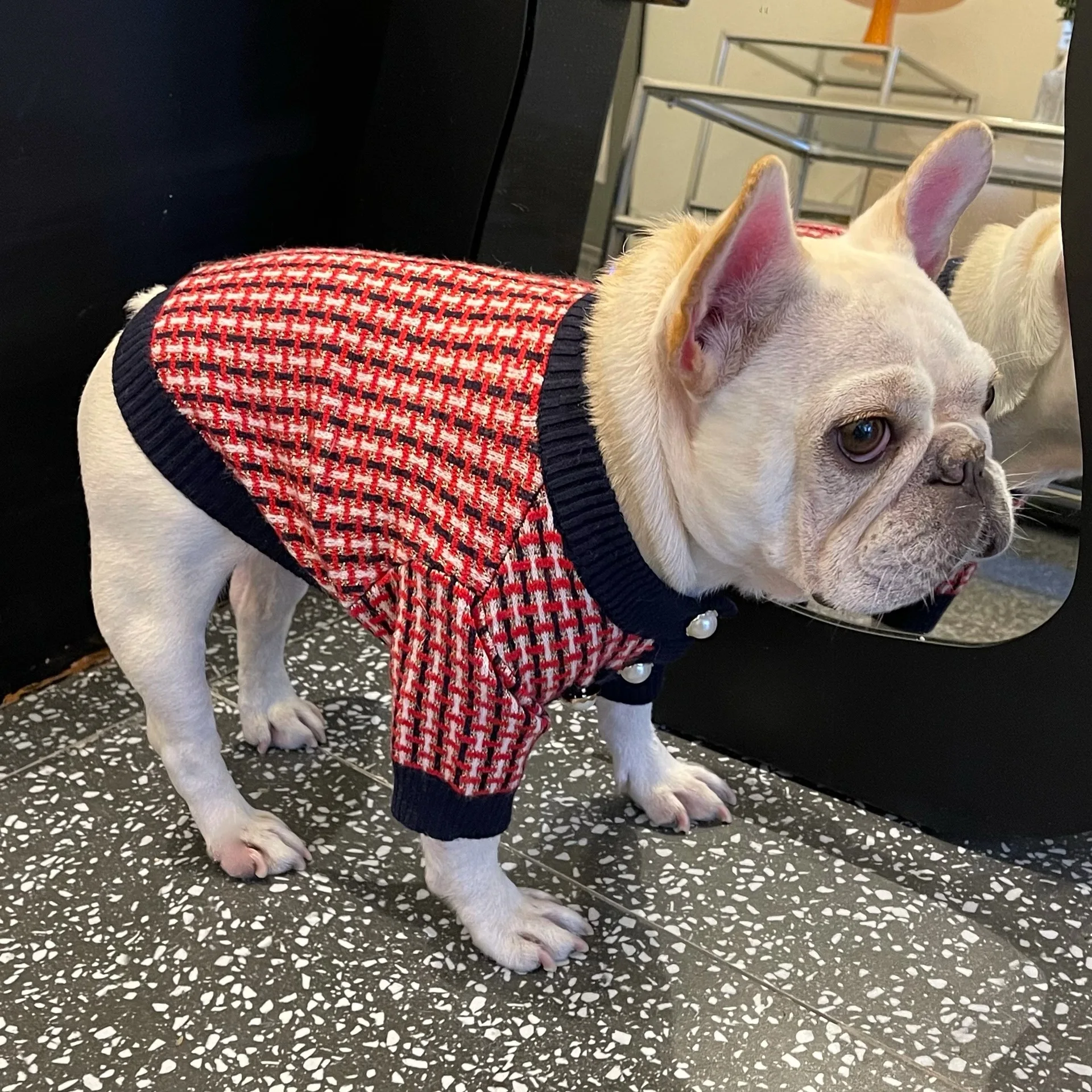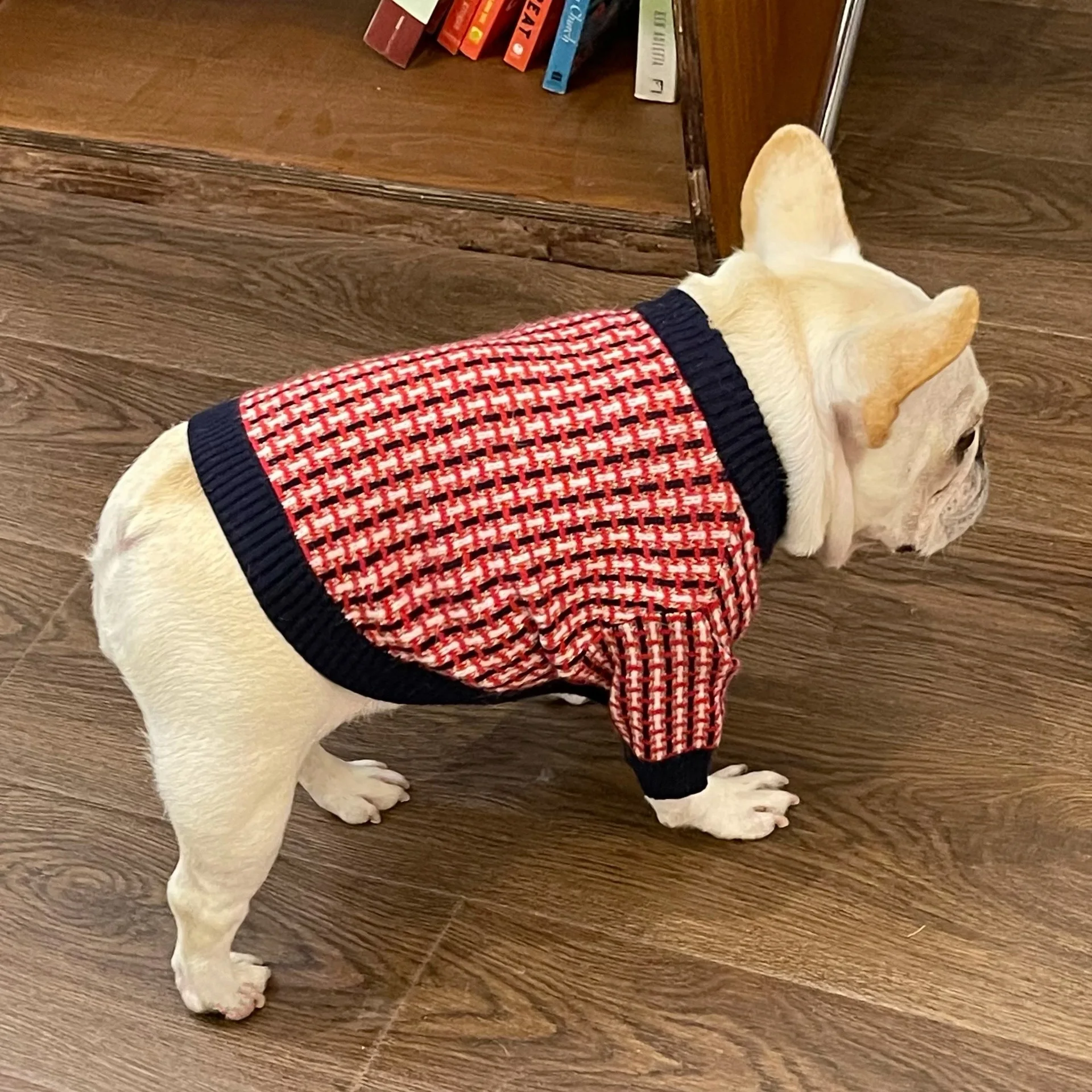 Свитер для собак, плюшевый, красный, Осень-зима, для французского б...