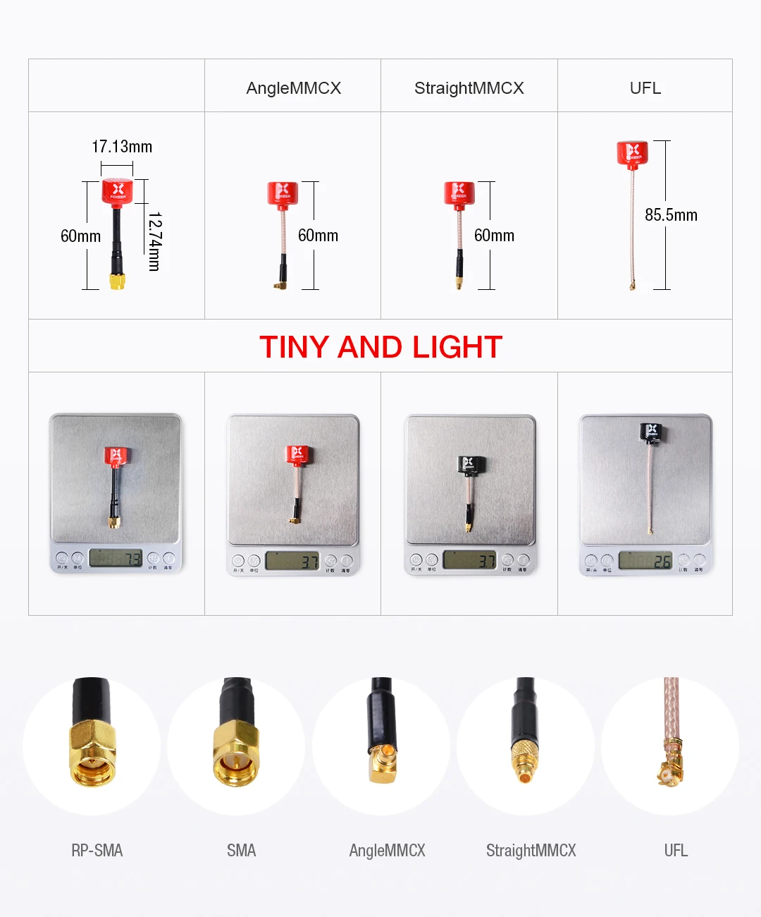 Foxeer антенна Lollipop 3 V3, FPV антенна 5,8G 2.6Dbi короткая RHCP SMA RPSMA UFL прямойугол MMCX 10 см для FPV радиоуправляемого гоночного дрона