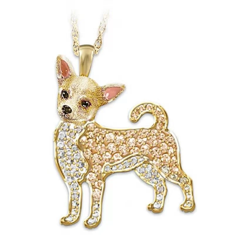 цепочка на шею женская ожерелье знак зодиака Изысканное модное ожерелье с подвеской в виде собаки чихуахуа с прозрачными и коричневыми Кристаллами Ожерелье для женщин подарок на день Святого Валентина ожерелье Nec
