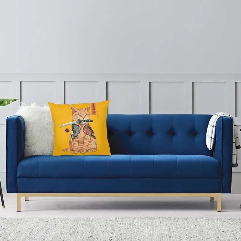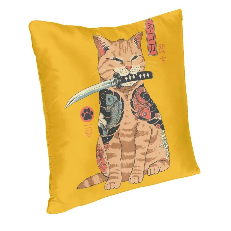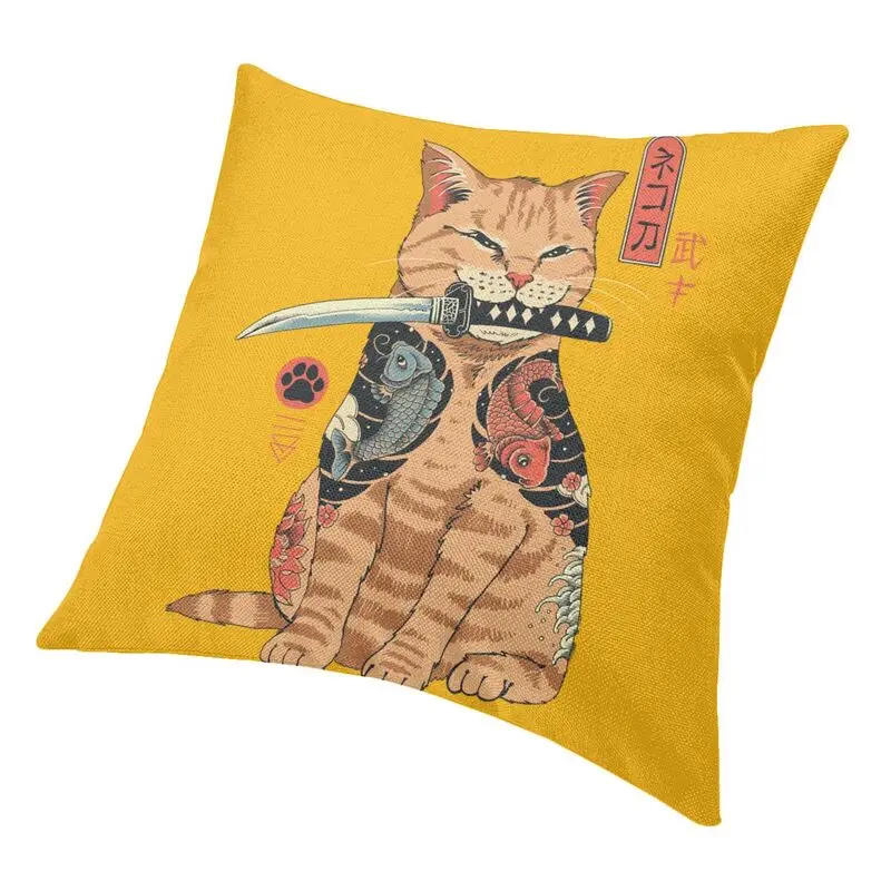 Забавная кошка, феленок, раньше 35x35 см, японская самурайская кошка, собака, наволочки для украшения салона, диван, искусственная подушка