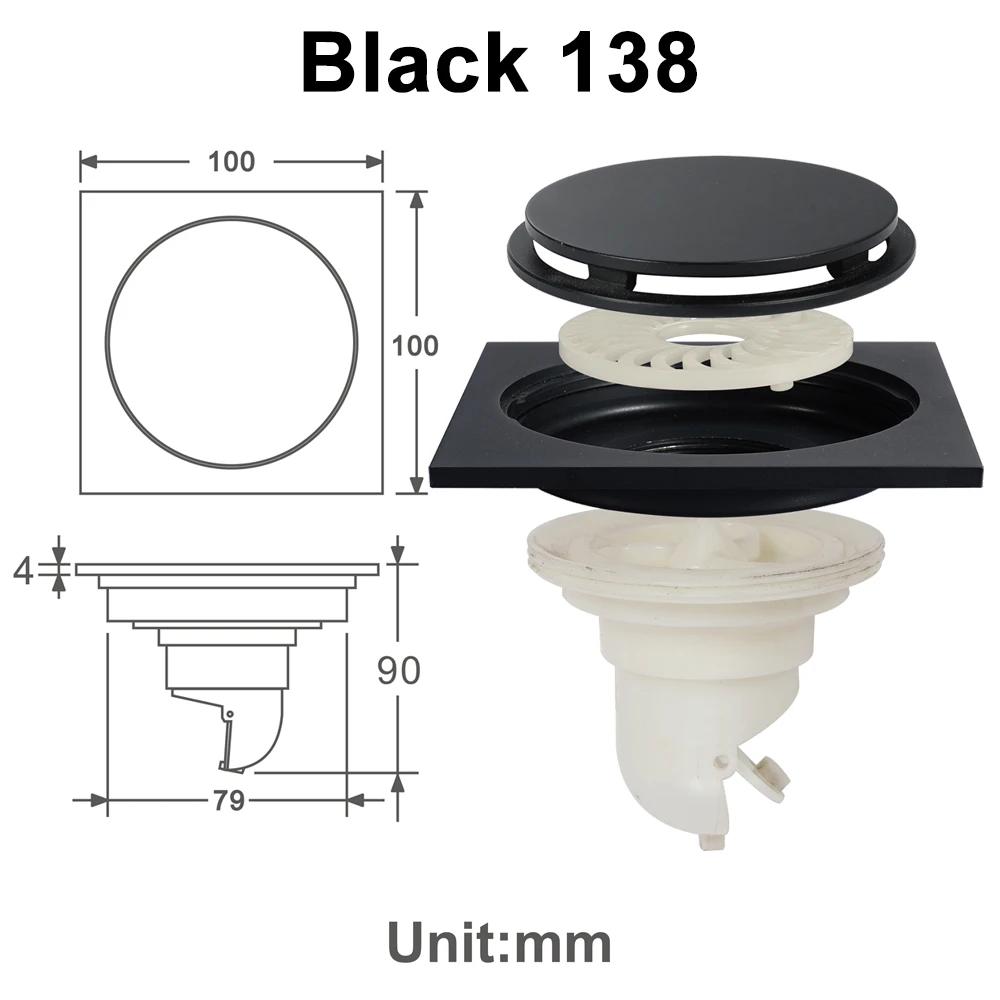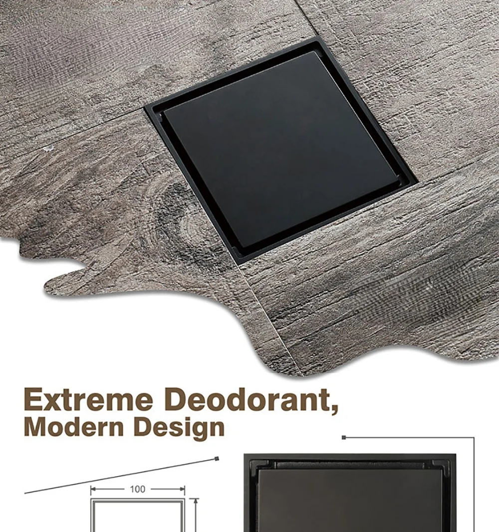 Черный трап для пола, латунный душ, чистый фильтр, 4 дюйма, напольн...