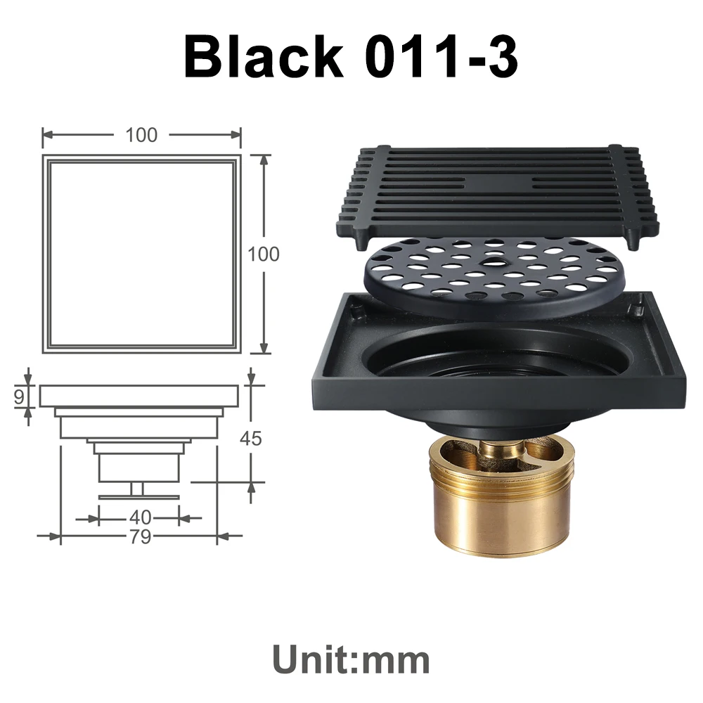 Черная Латунь 10x10 см Слив для душа для ванных и туалетных комнат ...