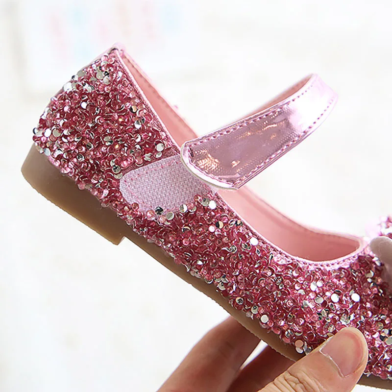 Туфли для девочек, туфли принцессы на плоской подошве, стразы с бле...