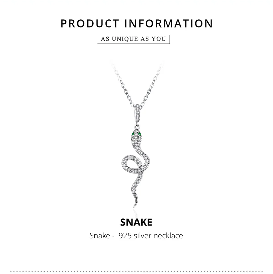 Bamoer, классическое ожерелье из стерлингового серебра 925 пробы с животными, змеиное ожерелье для женщин, Трендовое ожерелье с подвеской в виде сердца, Подарок на годовщину