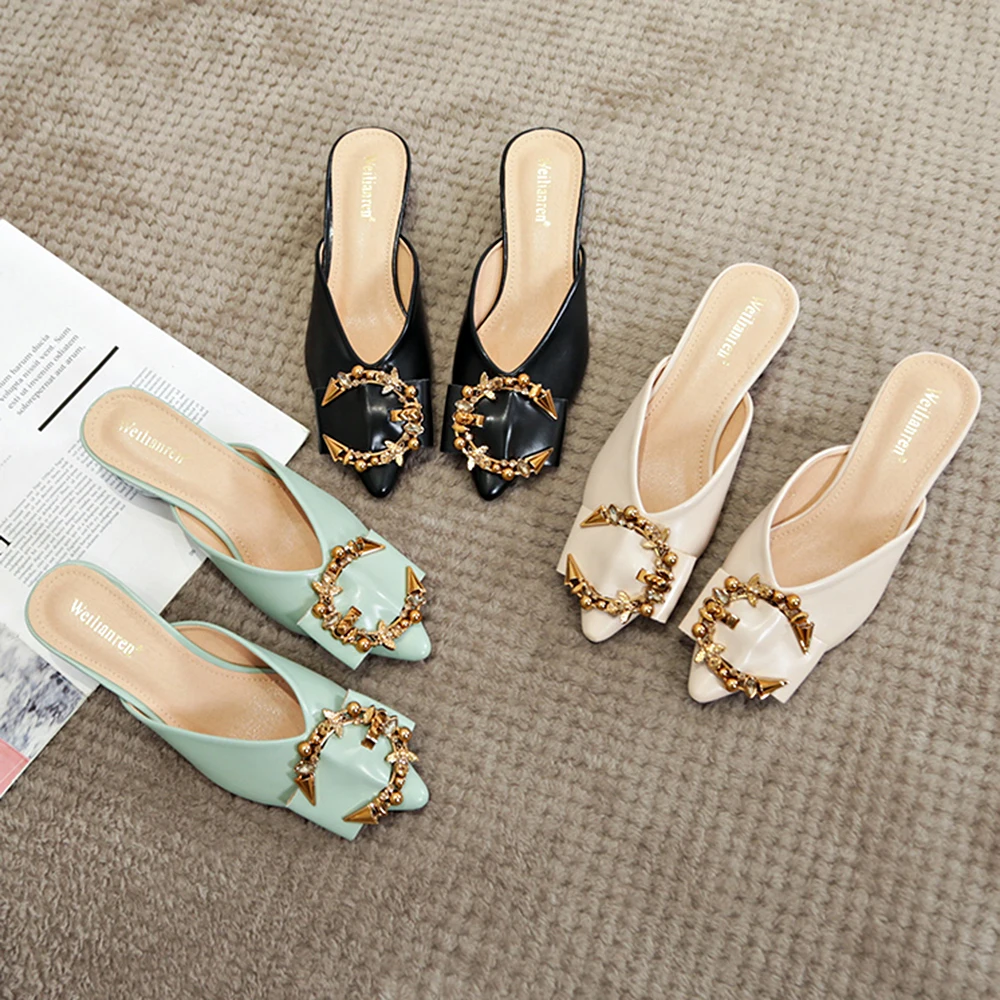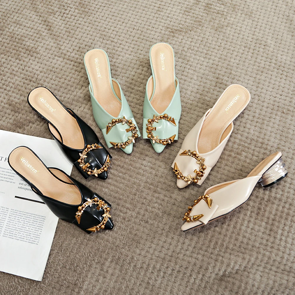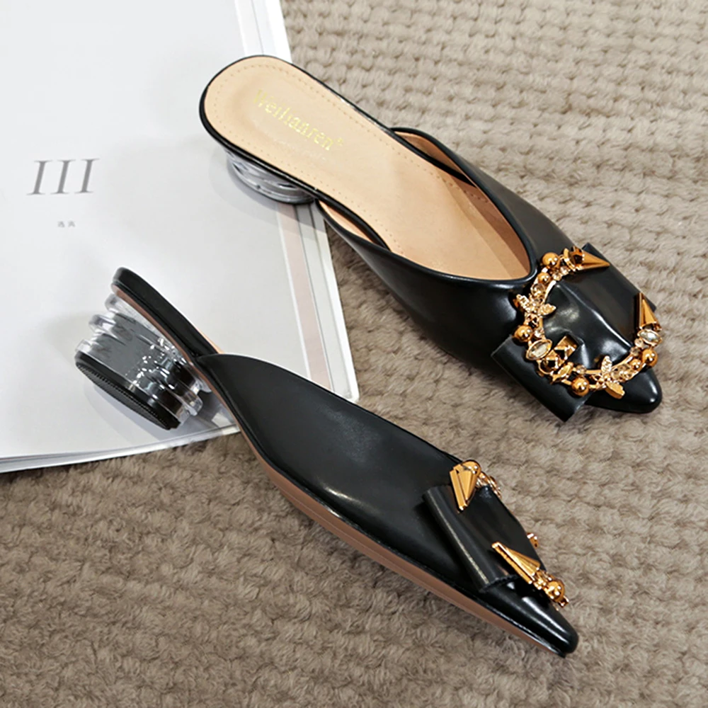 Мюли FamtiYard женские на высоком каблуке, пикантные шлепанцы, без застежки, летние сандалии, пляжная обувь для улицы