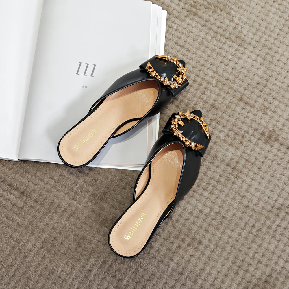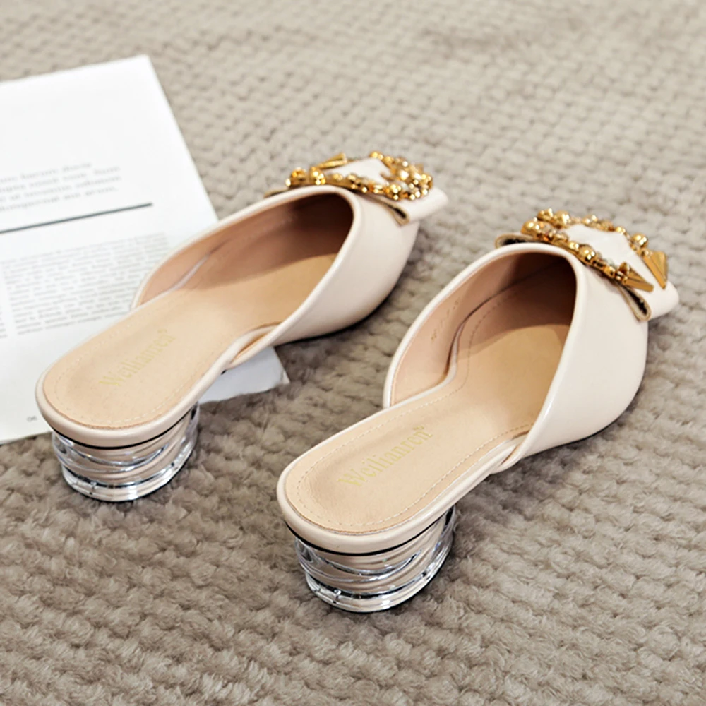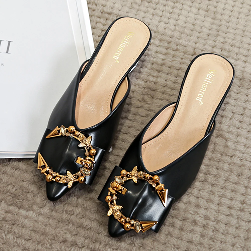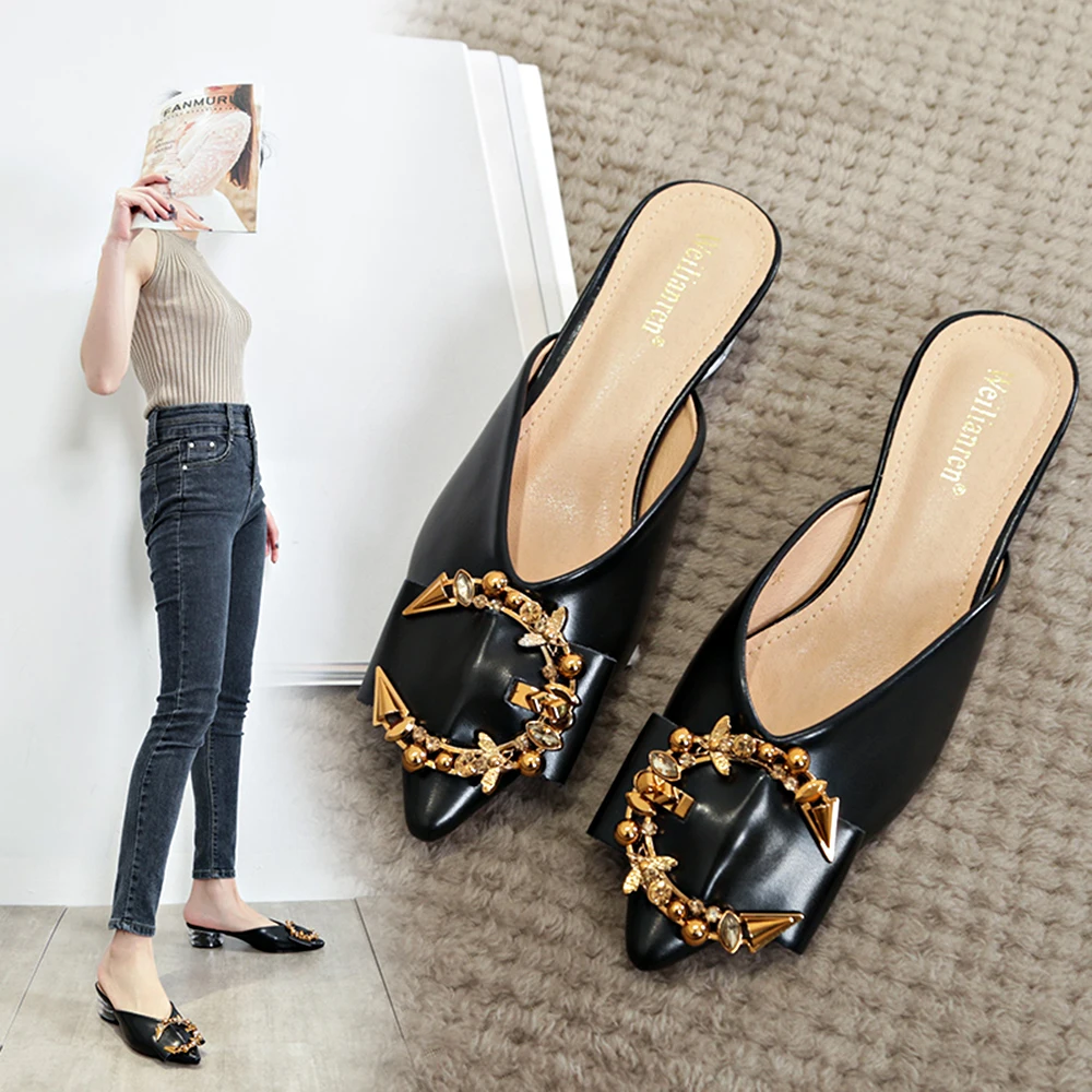 Мюли FamtiYard женские на высоком каблуке, пикантные шлепанцы, без застежки, летние сандалии, пляжная обувь для улицы