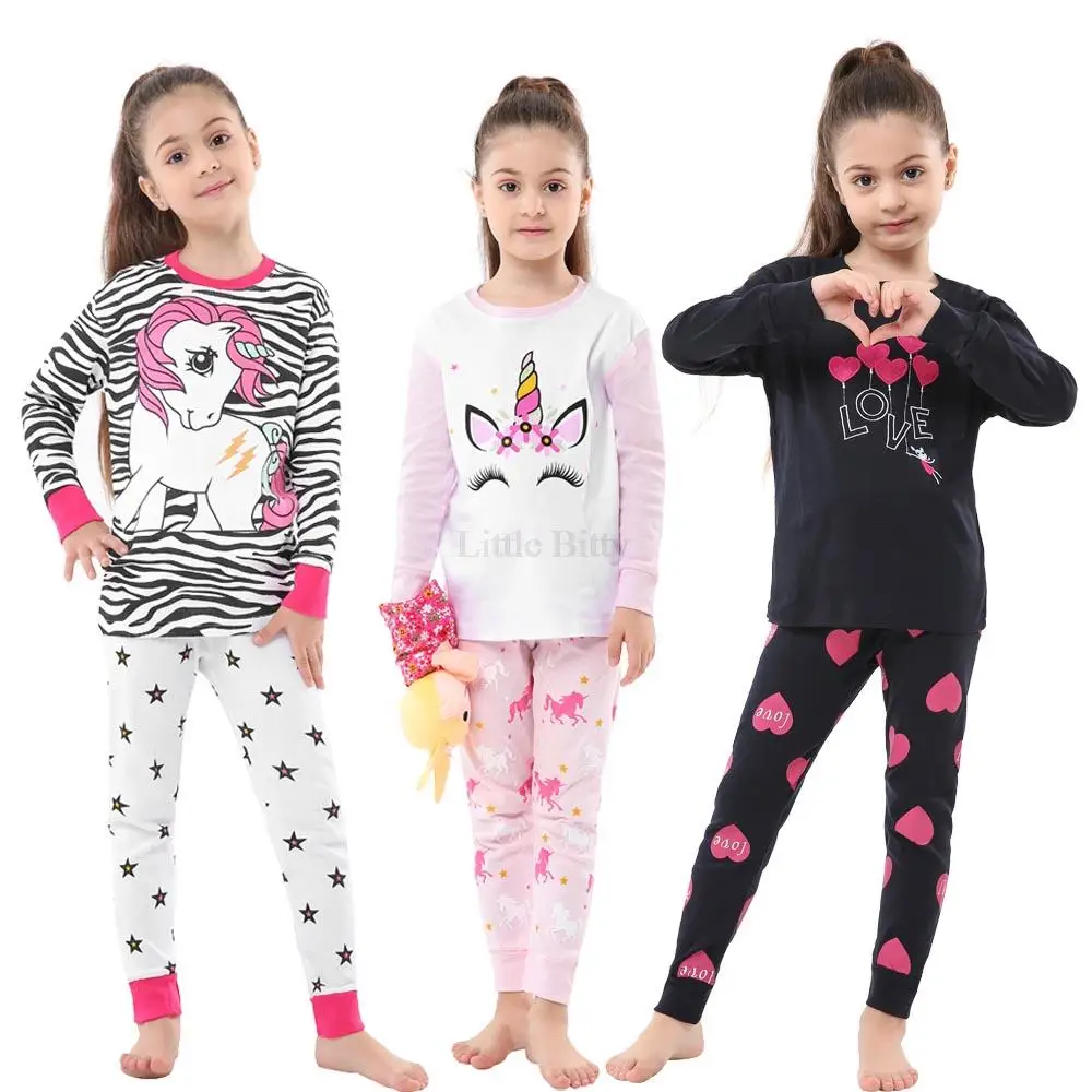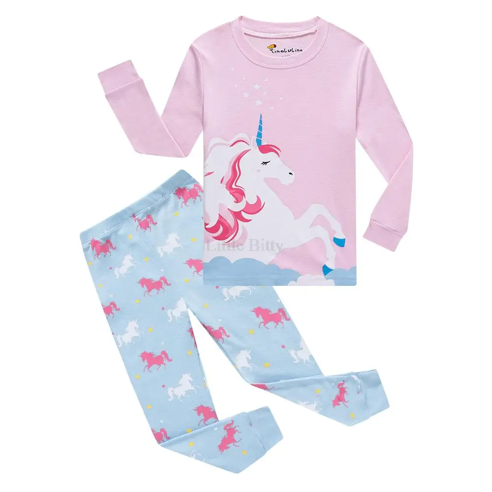 Пижама с единорогом для девочек, комплект детской одежды из 100 хлопка, детская одежда для сна, детские пижамы для девочек, комплекты пижамы Pjs