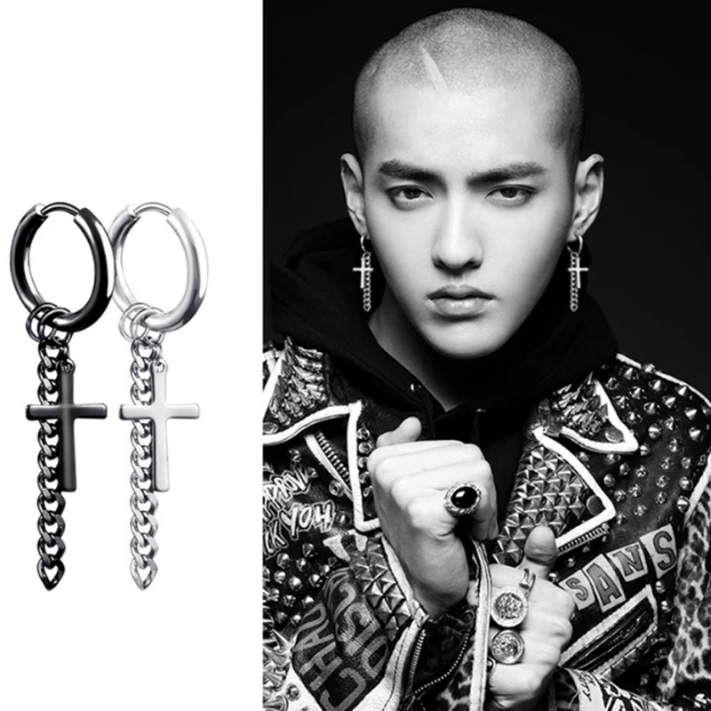 Серьги из нержавеющей стали и титана для мужчин и женщин, Ювелирное Украшение с черным крестом и перьями в стиле рок-поп
