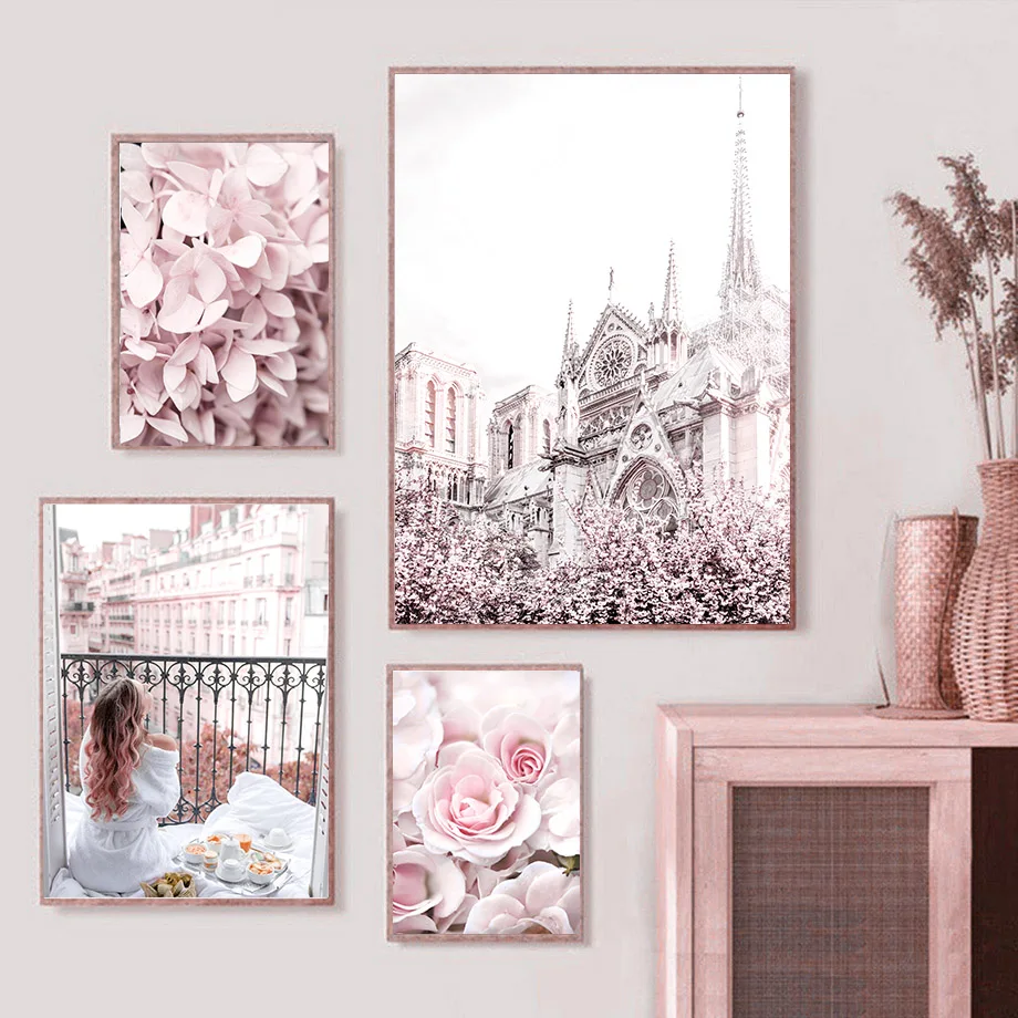 Настенная картина с розовыми цветами вишни, девушка, замок, скандинавские постеры и принты, Настенная картина на холсте для декора гостиной