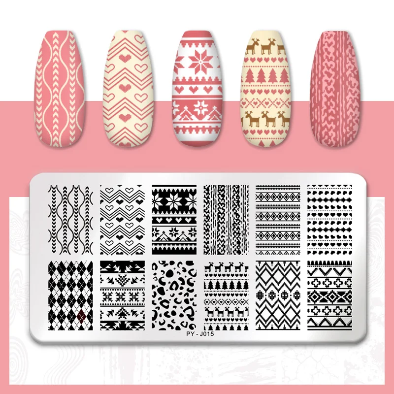 PICT YOU свитер клетчатые штамповочные пластины линии животных Геометрия фрукты тема шаблон форма трафарет для дизайна ногтей инструменты