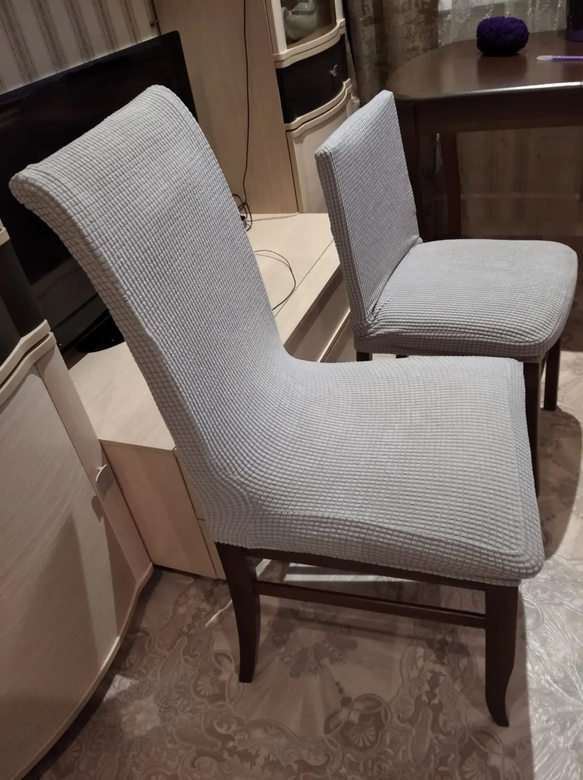 Супер чехлы. Красивый prezentują. Очень гибкие и подходят для множества стульев. Все согласно описанию. Даже доставка была очень быстрой. Рекомендуется.