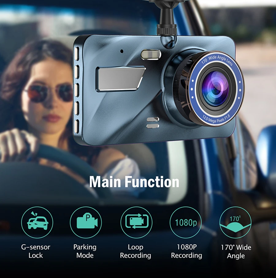 Видеорегистратор, 4-дюймовый IPS-экран, HD 1080P, Автомобильный видеорегистратор, реверсивное изображение, Автомобильный видеорегистратор, регистратор с широким углом обзора 170