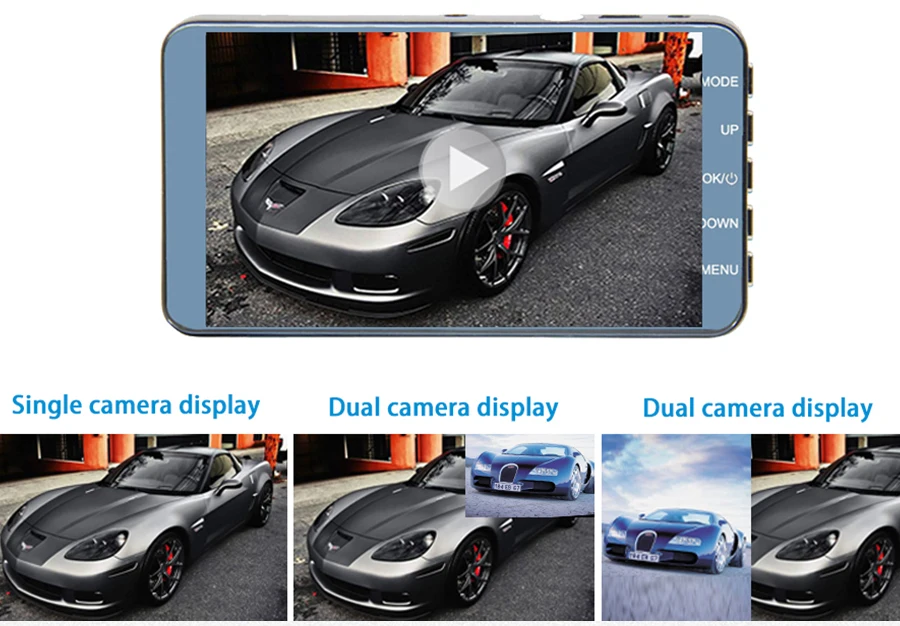 4,0-дюймовый высокой четкости ЖК-дисплей, высокая к функциональным и высокого качества позволяет вести запись качественного видео. Использование антибликового зеркала может эффективно ослабить отражение сильного и слабого светильник, что делает движение более удобным и безопасным.