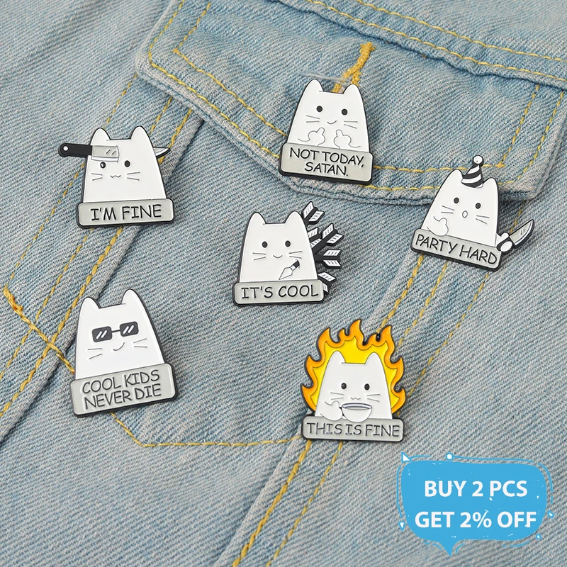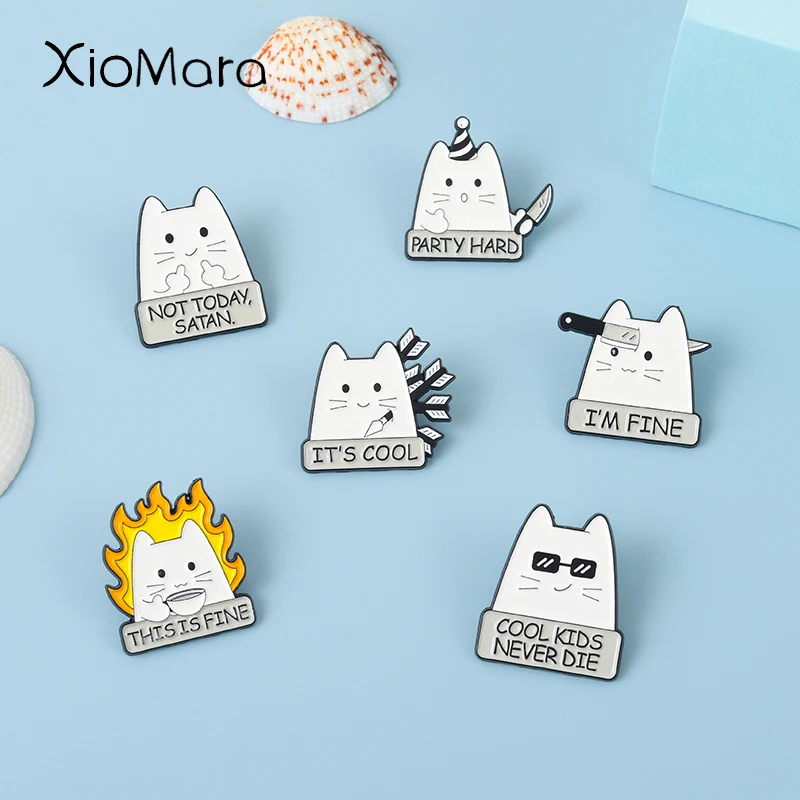 Эмалированные булавки в виде милых Белых Кошек Не Сегодня Сатана I ...