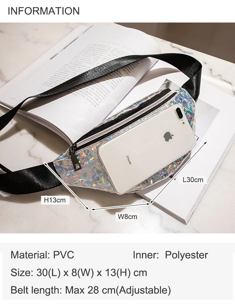 Голографическая поясная сумка с блестками, Женская поясная сумка, Ж...
