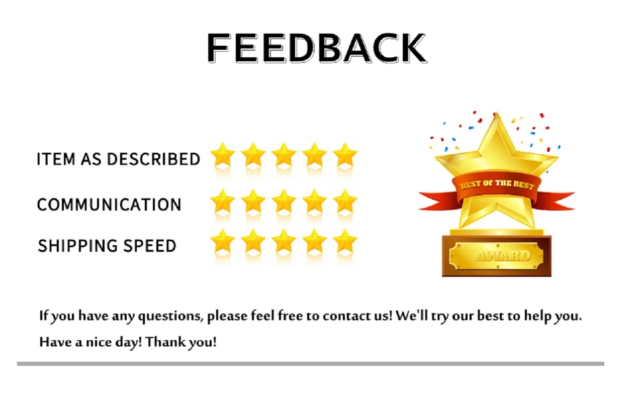 1. Товары отправляются только после подтверждения оплаты.2. Правильный подробный адрес должен быть показан при размещении заказа.3. Пожалуйста, свяжитесь с нами как можно скорее, если вы не получили посылка в течение 60 рабочих дней после доставки и позвольте нам несколько рабочих дней, чтобы проверить недоставленную посылка.