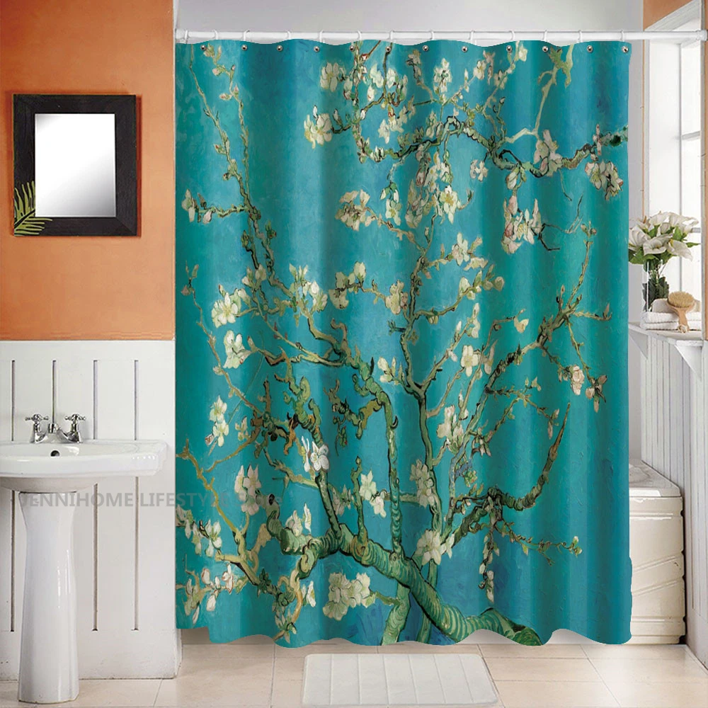 Тканевая занавеска для душа с принтом вишневого цветка, занавеска для ванной, водонепроницаемая для ванной комнаты с крючками, с рисунком маслом, для горных походов