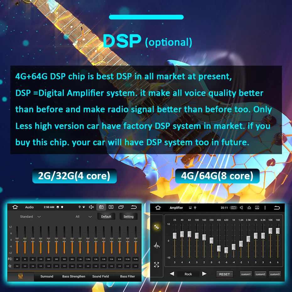 DSPDSP-это цифровая система усилителя, она использует цифровой сигнал, она делает звук автомобиля лучше, чем раньше. PX5 и PX6 DSP-лучший DSP на рынке, пожалуйста, не беспокойтесь о количестве эквалайзера, пожалуйста, чувствуйте наше качество звука px5/px6 радио, это очень хорошо.PX5/PX6 DSP включает много страниц, вы можете задать много параметров, как вы хотите, пожалуйста, смотрите ниже страницы.