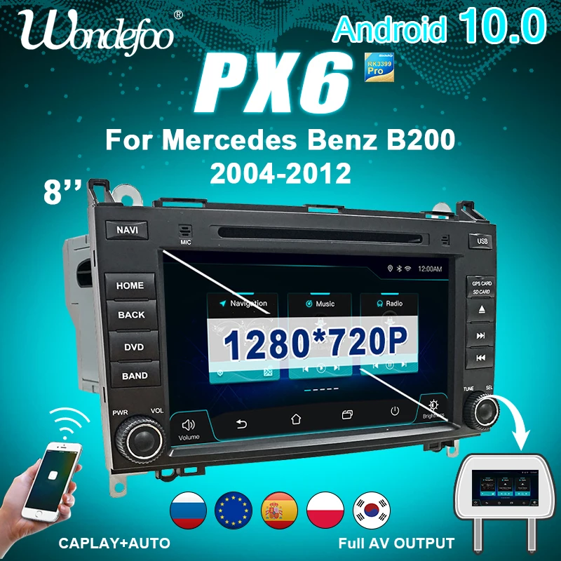 Автомагнитола PX6, 2 din, android 10, для Mercedes Benz B-Class W245 B200 B180 B170 B160 Sprinter 3000 A-Class W169 VianoVW Crafter