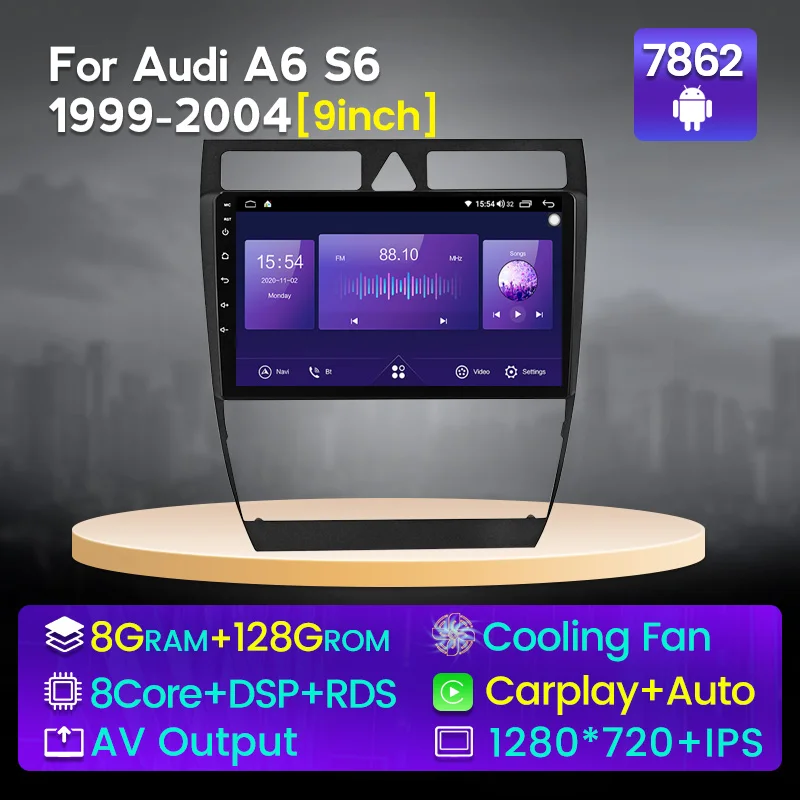 Автомобильный мультимедийный плеер NaviFly 9 ''8 + 128G Android 11 для Audi A6 C5 1997-2004 S6 2 1999-2004 RS6 1 2002-2006 Carplay автостерео