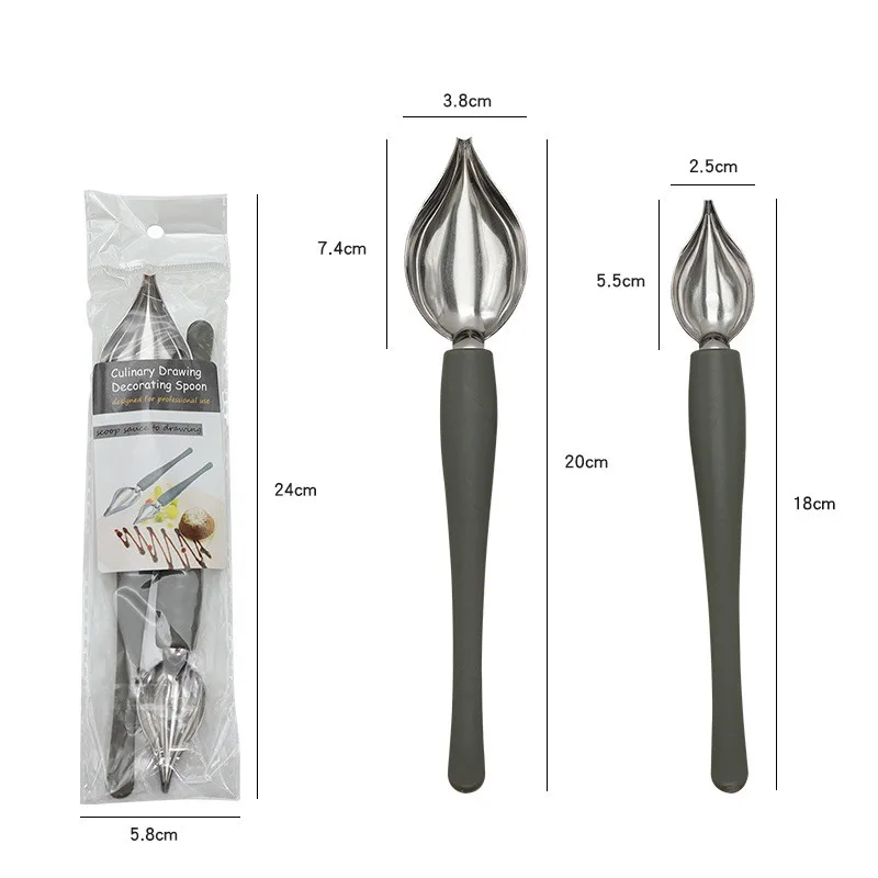 «Особенности: креативная ложка для украшения соуса делает ваш кате более красивым и вкусным. Ручка из полипропилена, противоскользящая и приятная на ощупь.