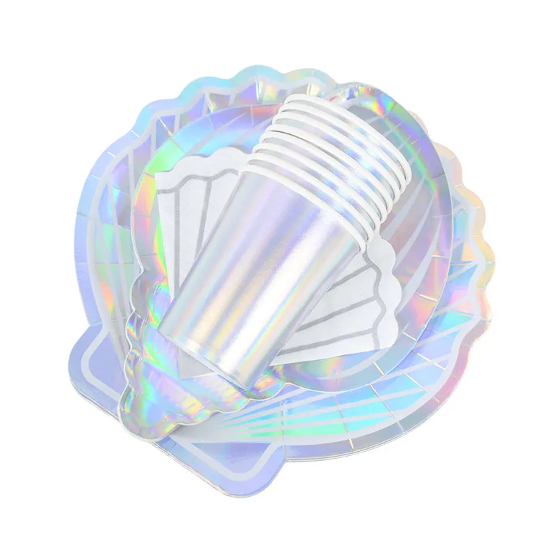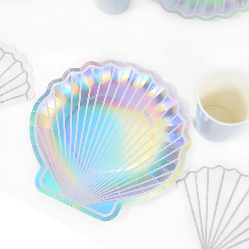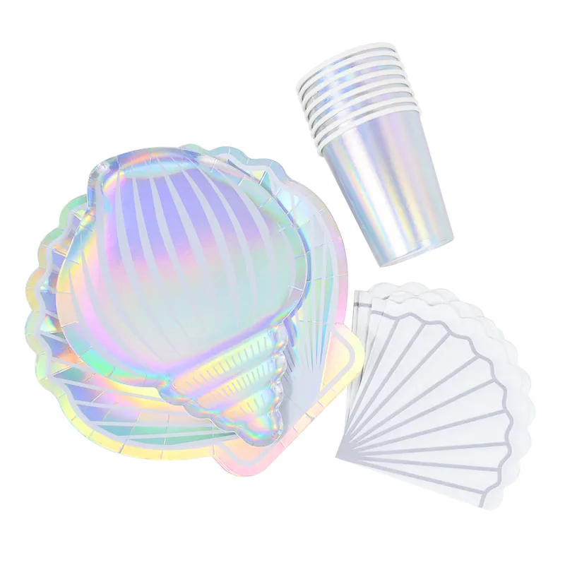 Одноразовая посуда для вечеринки русалка вечерние, чашка с разноцветными пластинами в виде ракушек для морвечерние вечеринки, декорирование вечеринки русалочка для будущей мамы, дня рождения