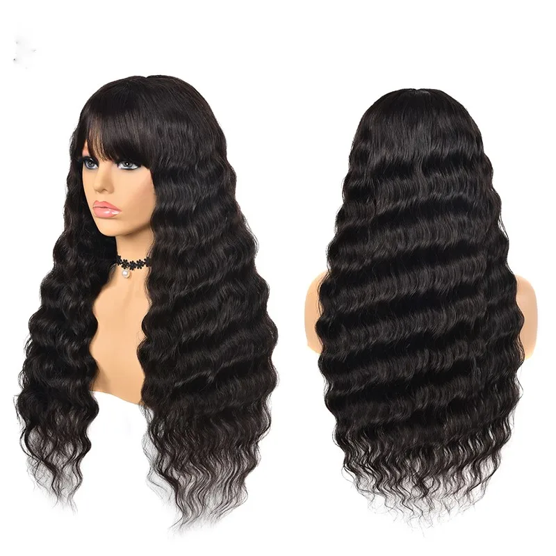 Парики Richgirl с глубокой волной с челкой, свободные бразильские человеческие волосы без повреждений, машинная работа, с челкой, для чернокожих женщин, натуральные 1B