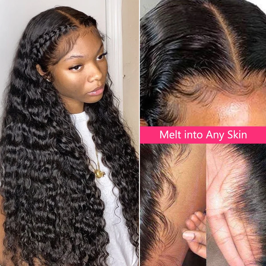 Свободный, глубокая волна, HD кружевной, передний, al парик, 30 дюй...