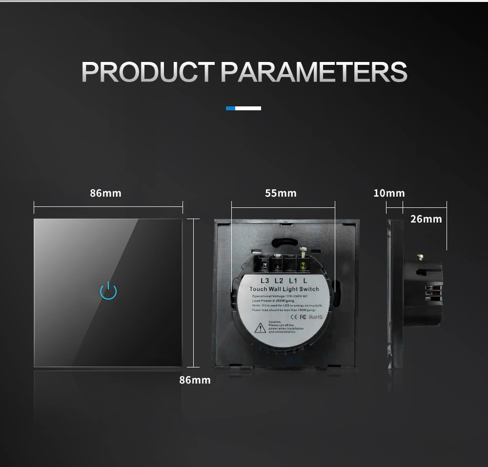 1,1/2/3 бандажный сенсорный выключатель 220 В настенный светильник, стандарт ЕС Умный домашний выключатель2. Упрочненная стеклянная панель, не выцветает, выглядит элегантно и стильно.3. Супер чувствительность-просто нужно прикоснуться к нему светильник, водонепроницаемый и устойчивый к царапинам. Защита от электрического удара.4. Доступны популярные цвета: черный, белый, золотой,5. С синим светодиодный индикатор, очень отличается, более гуманизированный дизайн, кнопка будет светиться ночью, что делает его легче найти.6. Новый импортный Процессор IC для хорошей чувствительности и стабильной производительности7. Основание изготовлено из термостойкого поликарбоната, что делает переключатель долговечным и долговечным.8. Одножильный провод управления, легко установить, заменить старый переключатель непосредственно.9. Сенсорное управление обеспечивает более длительный срок службы, чем традиционный переключатель.10. Защита от перегрузки по току, от помех, Сертификация: CE, ROHS, FCC,EU. 11, легко моется, стекло панели сопротивляется деформации и выцветанию.11. Элегантный вид, отлично подходит для многих современных стилей декора. Его можно применять для гостиной, спальни, коридора, кухни, ванной комнаты, офиса и так далее.