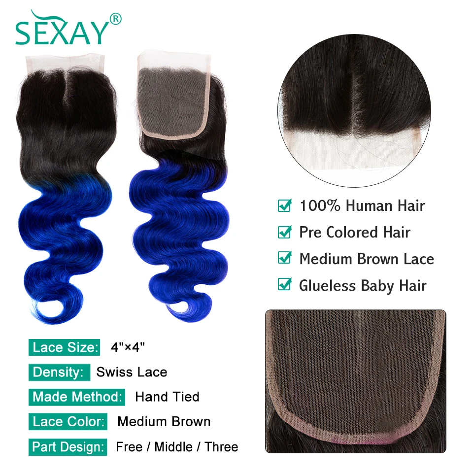 Model NumberUnprocessed Peruvian Body Wave Ombre Blue Hair with closure