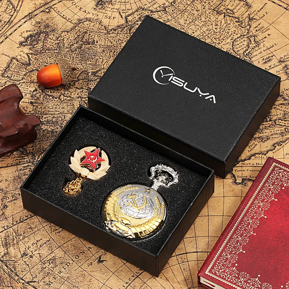 Часы карманные CCCP, набор значков, кварцевые часы СССР, винтажные карманные часы с подвеской, подарки для мужчин, карманные часы с коммунистическим Советским Союзом