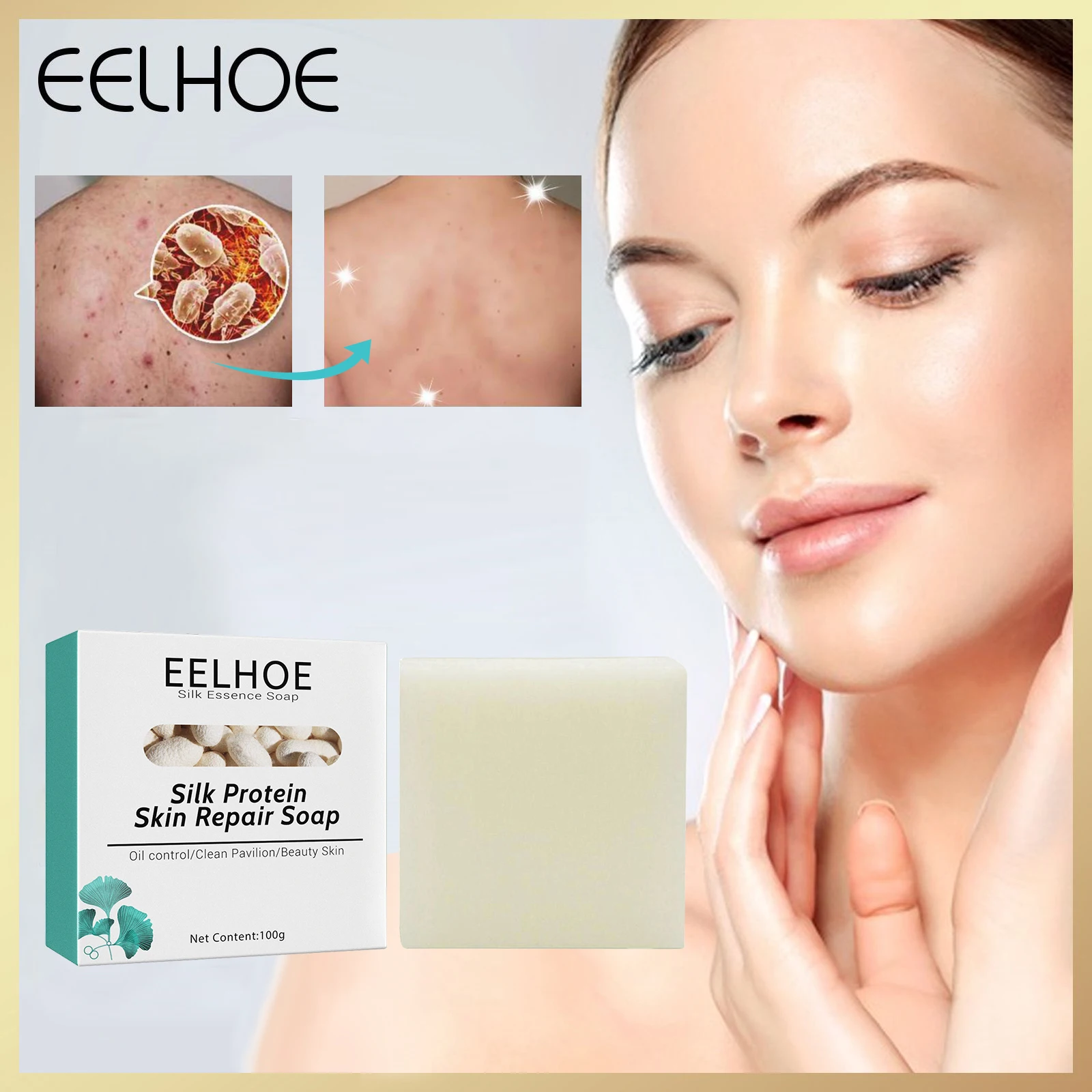 Eelhoe Шелковый протеиновый Восстанавливающий мыло для ухода за кожей лица, очищающее мыло для удаления черных точек, кожное масло для ванной 100 г