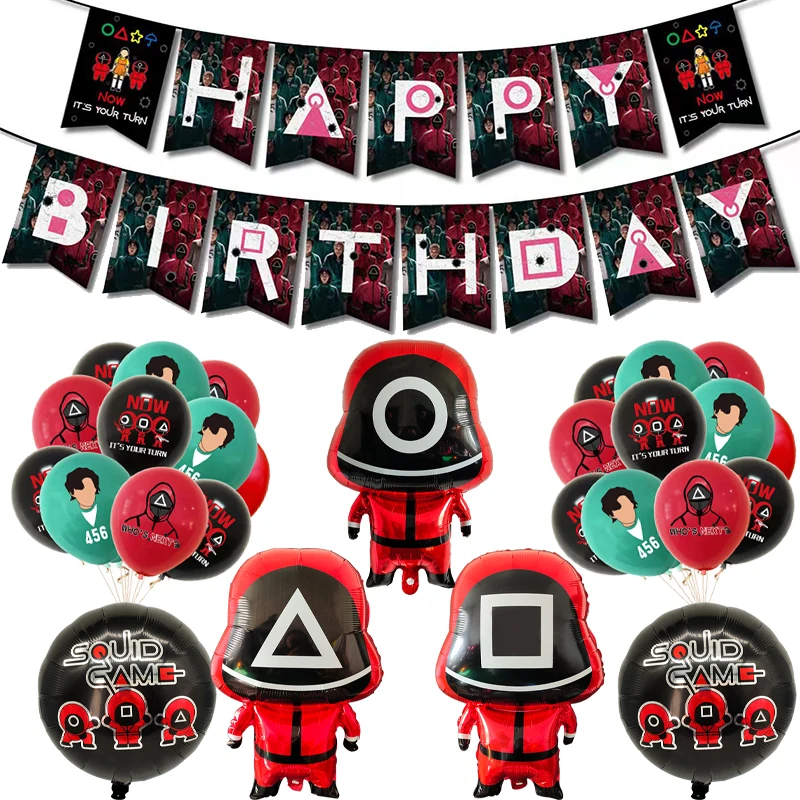 Фольгированные воздушные шары из игры кальмар, украшение для темативечерние, конфета, баннер на день рождения, товары для вечерние, Мультяшные фанаты, детские игрушки