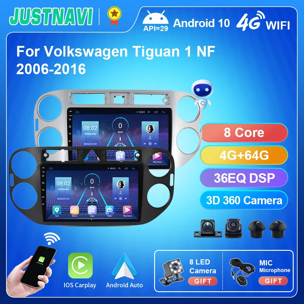Автомагнитола JUSTNAVI RDS DSP для автомобиля Android 10,0 для Volkswagen Tiguan 1 NF 2006 - 2016 с Навигатором GPS WIFI 4G 64G без DVD