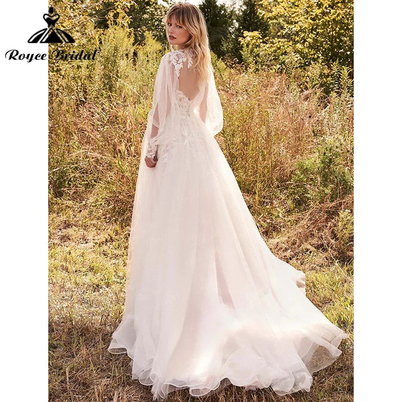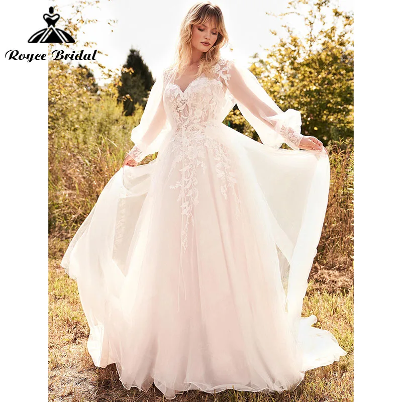 Богемное свадебное платье А-силуэта в богемном стиле с длинными рук...