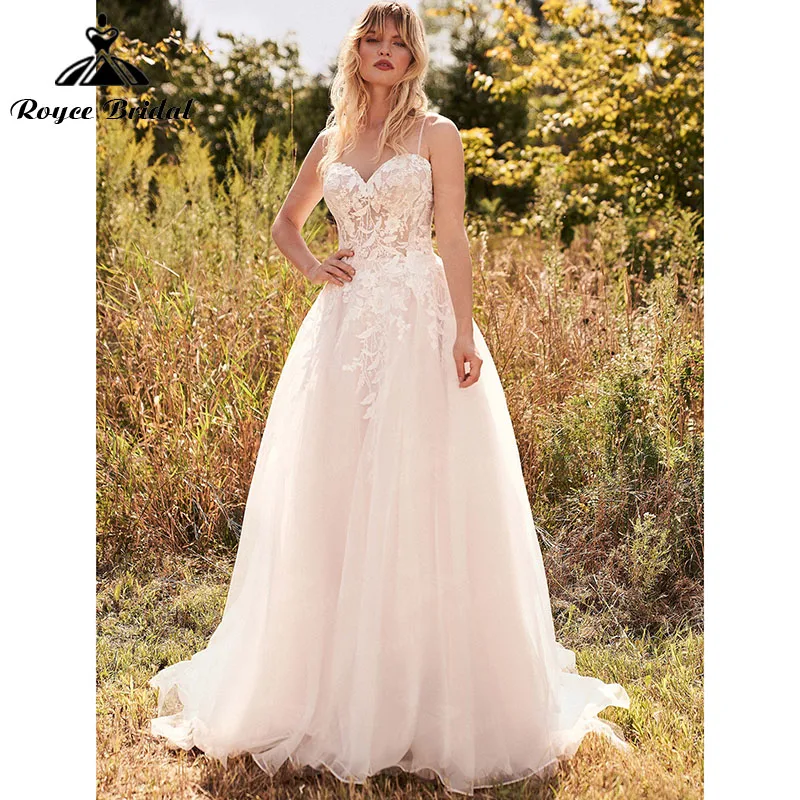 Пляжное богемное свадебное платье А-силуэта на тонких бретельках с ...