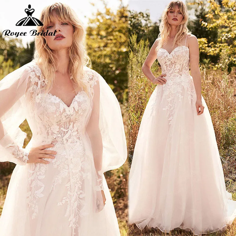 Летние кружевные богемные свадебные платья 2022 с рукавами-крылышка...