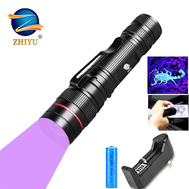 Ультрафиолетовый фсветильник светильник UV395 с функцией масштабирования, Ультрафиолетовый фонарь для обнаружения пятен мочи животных, работает от батареи 14500 скорпиона