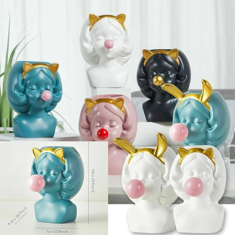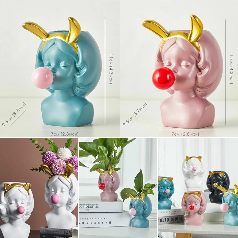 Каучуковая ваза в скандинавском стиле, милая девушка, фигурка из жвачки, декоративный горшок для суккулентов, цветов, современный домашний держатель для фотографий, маленький