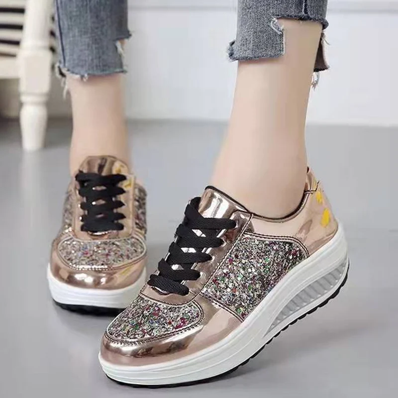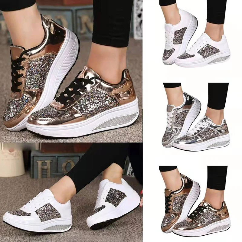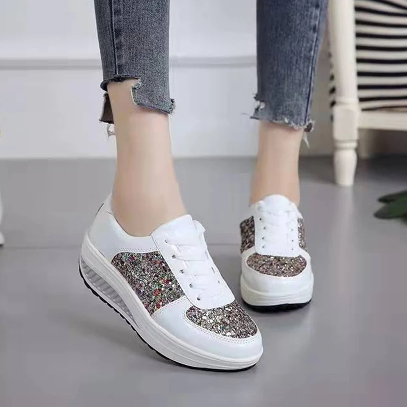 Женские Кроссовки на танкетке с блестками, модная спортивная обувь ...