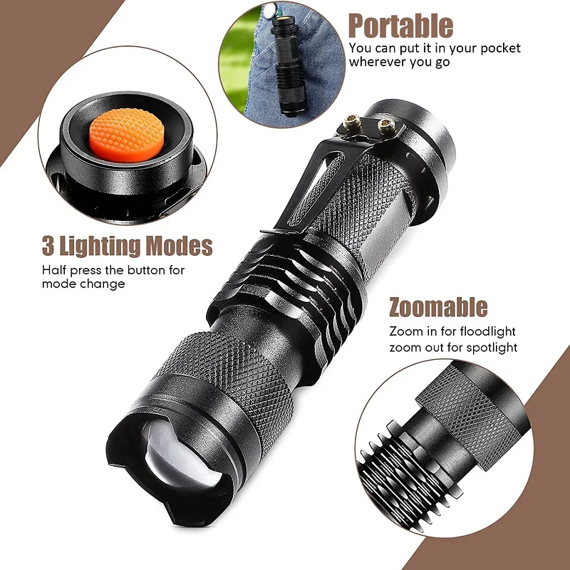 Подходит для многих случаев: Тактический светодиодный фонарик может быть широко применен, фокусное расстояние можно регулировать в зависимости от различных обстоятельств, а тактический светодиодный фонарик подходит для охоты, езды на велосипеде, альпинизма, кемпинг и другие виды активного отдыха, для кемпинга, автомобиля, велоспорта, пешего туризма, отключения питания, ящик для инструментов, Барбекю и т. д. отлично подходит для рождественских подарков.