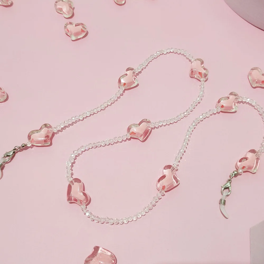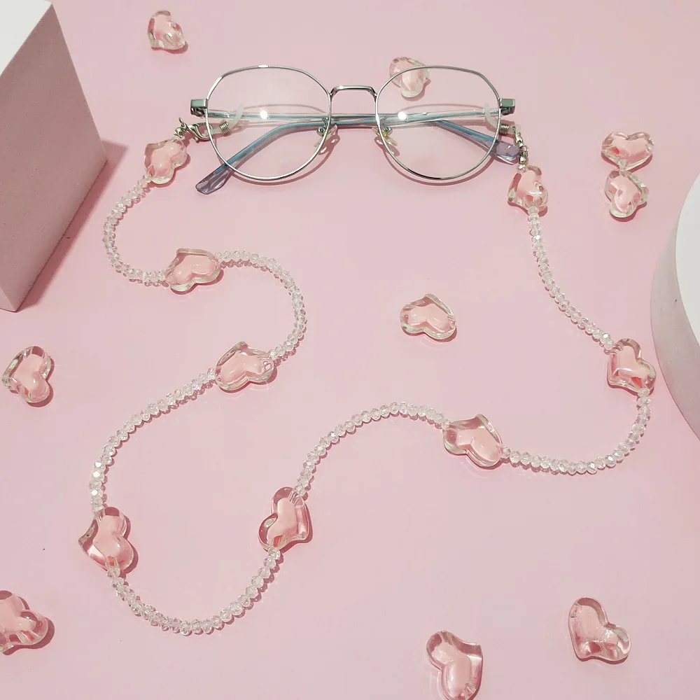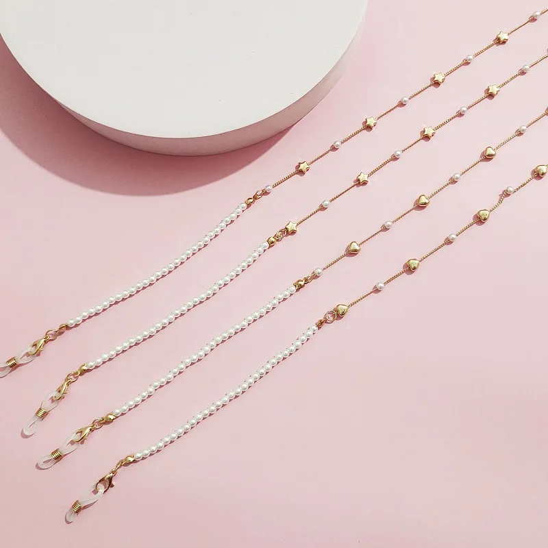 Цепочка цепочка для очков женская с жемчугом, модный винтажный держатель для очков, металлический шнурок с бусинами, в форме сердца