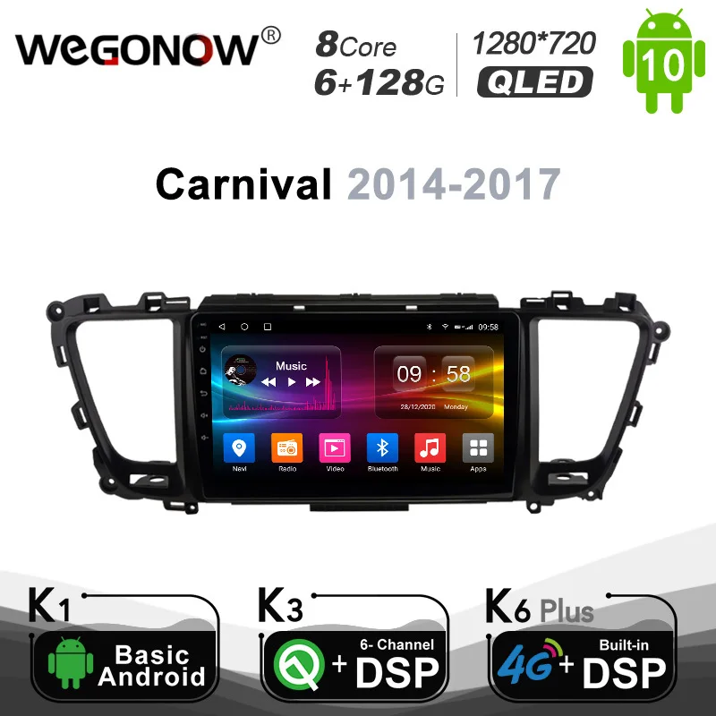 Ownice K6 Plus Авторадио автомобильное радио 2 Din для Kia Carnival 2014 - 2017 Android 10,0 мультимедиа 4G LTE 6G Ram 128G Rom Подходит для Kia Carnival 2014-2017 Если оригинальное автомобильное радио имеет функцию ниже, совместим ли блок Ownice Head? * Управление рулем --- да* Оригинальный радар или датчик упаковки --- да* Информация о состоянии воздуха, внешняя температура --- да* Оригинальная AUX / USB/камера заднего вида/усилитель --- Да, поддержка* Оригинальная камера наблюдения за птицами 360 градусов --- Да, поддержка Внимание: Приведенная выше информация только для справки, иногда она может не быть совместима с некоторыми автомобилями, потому что автомобили производятся в разных странах в разных летних вариантах, спасибо за понимание. K6 Plus 128G ---UIS7862| Android 10,0 |8 ядер (A75 * 2 + A55 * 6) | 6G + 128G | 2.5D + IPSQLED 1280*720 | Радио 7708 | Усилитель 7851L K6 Plus 64G ---UIS7862| Android 10,0 | 8 ядер (A75 * 2 + A55 * 6) | 4G + 64G | 2.5D + IPSQLED 1280*720 | Радио 7708 | Усилитель 7851L K6 Plus 32G ----UIS7862| Android 10,0 | 8 ядер (A75 * 2 + A55 * 6) | 3G + 32G | 2.5D +IPS QLED 1280*720 | Радио 7708 | Усилитель 7388 K3-PX5 ------ PX5 | Android 10,0|8 ядер | 2G + 32G | 2.5D + TN1024*600 | Радио 7708 | Усилитель7851л K3-PX6 ------ PX6 | Android 10,0 | 6 ядер (A75 * 2 + A53 * 4)| 4G + 64G | 2.5D +IPS 1280*720 | Радио 7708 | Усилитель 7851L