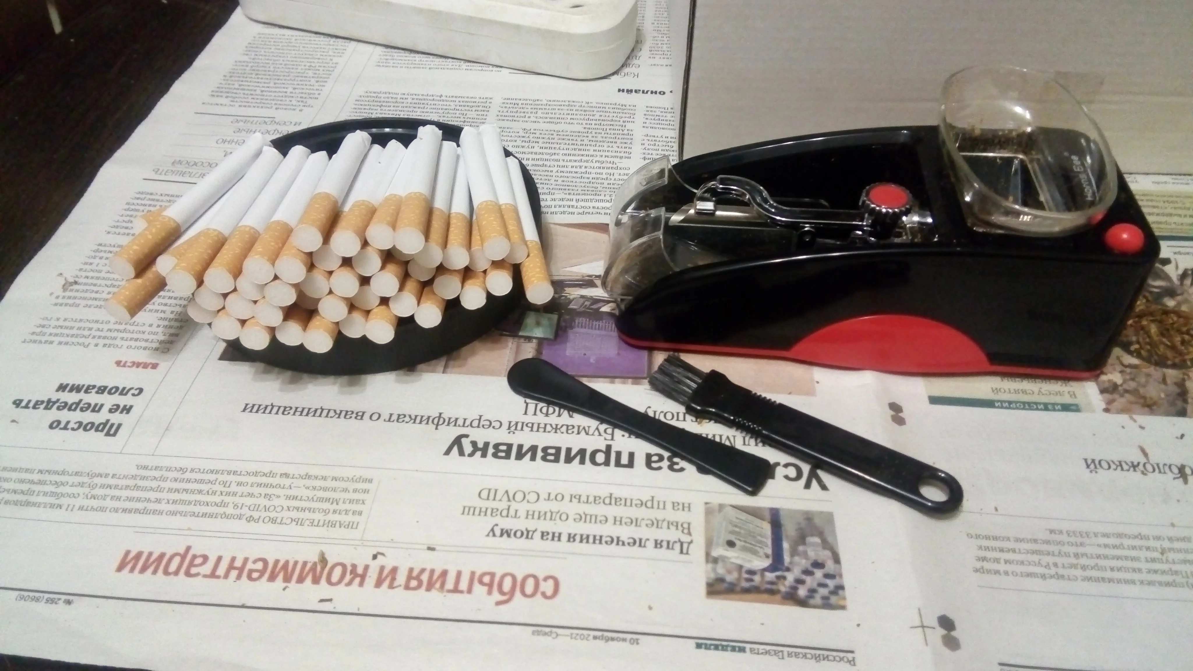машинка супер!!! продавца рекомендую, дошло за неделю.... разная забивка кому как нравиться, гильзы слим подходят 6,5 мм. 35 сигарет за 30мин. супер. упаковка в идеальном состоянии.