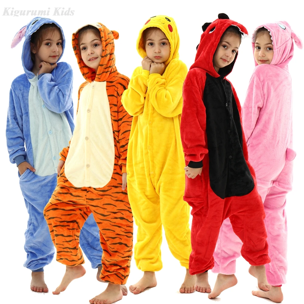 Пижама-кигуруми в виде тигра, динозавра, кролика, единорога, розовая, желтая, красная пижама для детей, пижамы для мальчиков, одежда для девочек, комбинезон в виде животных