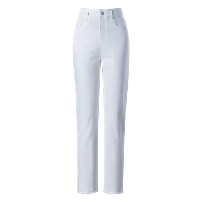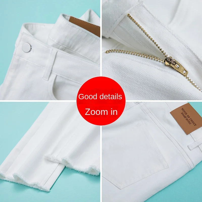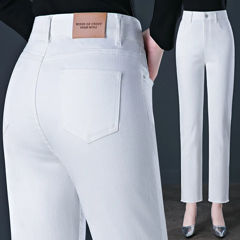 2022 белые джинсы, женские весенне-осенние свободные прямые Стрейчевые укороченные брюки с высокой талией, модные женские брюки