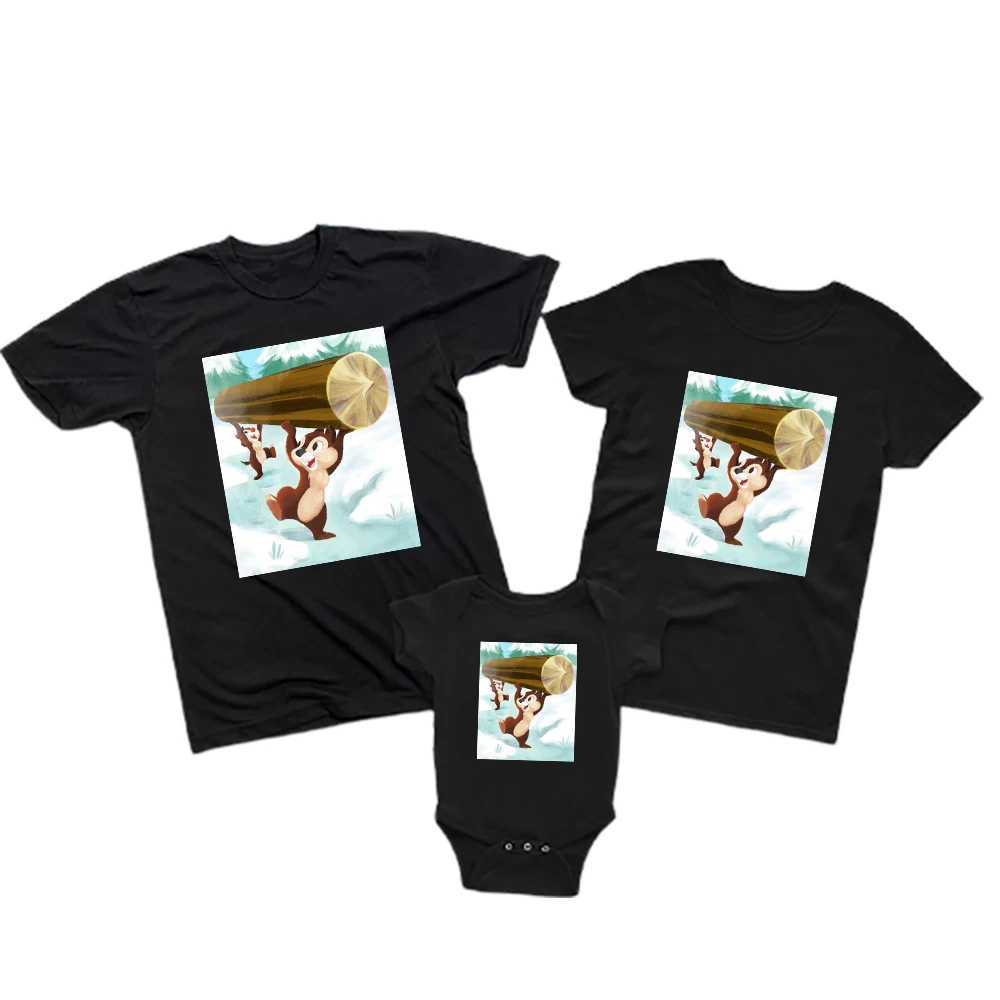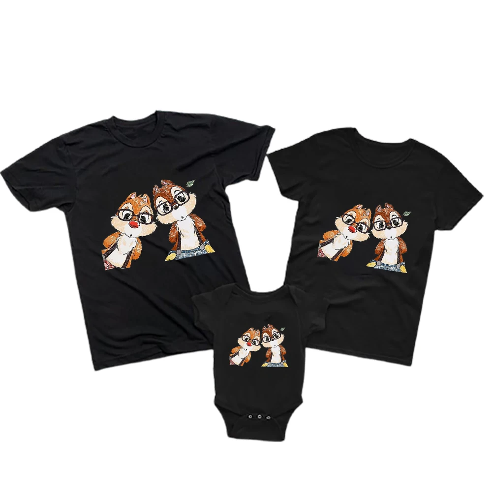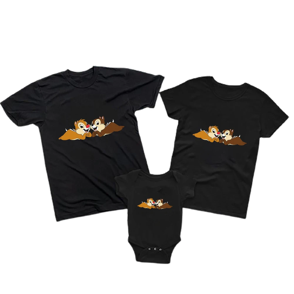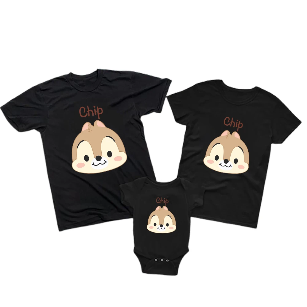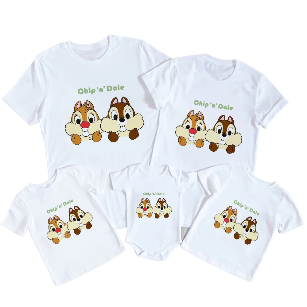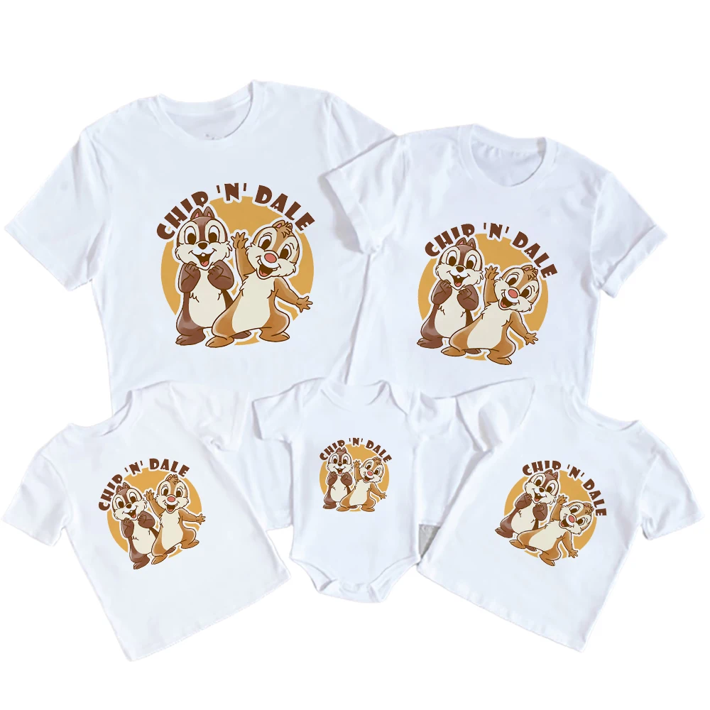 Кавайная детская одежда с рисунком чипа и Дейла, футболки для папы и сына, детский комбинезон, повседневная брендовая футболка с коротким рукавом для взрослых от Disney