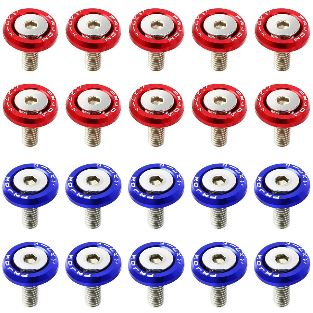 10 шт., M6 JDM, автомобильные модифицированные шестигранные крепежные детали, шайба для крыла, бампер, вогнутые винты, шайба для крыла, болты для номерного знака, автомобильный Стайлинг Описание: 100% абсолютно новый и высокого качества Шайбы fender Поместятся В любое отверстие для болтов 10 мм под капотом. Болты 6Mx20 рекомендуется для всех частей под вашим капюшоном, таких как крылья, фары, бамперы. Простота установки, инструкции по установке не включены. Спецификация: Тип материала: алюминий Применимо: Универсальный Цвет: красный, синий Посылка: 10*6Mx2 0 стальные болты 10 * анодированные шайбы