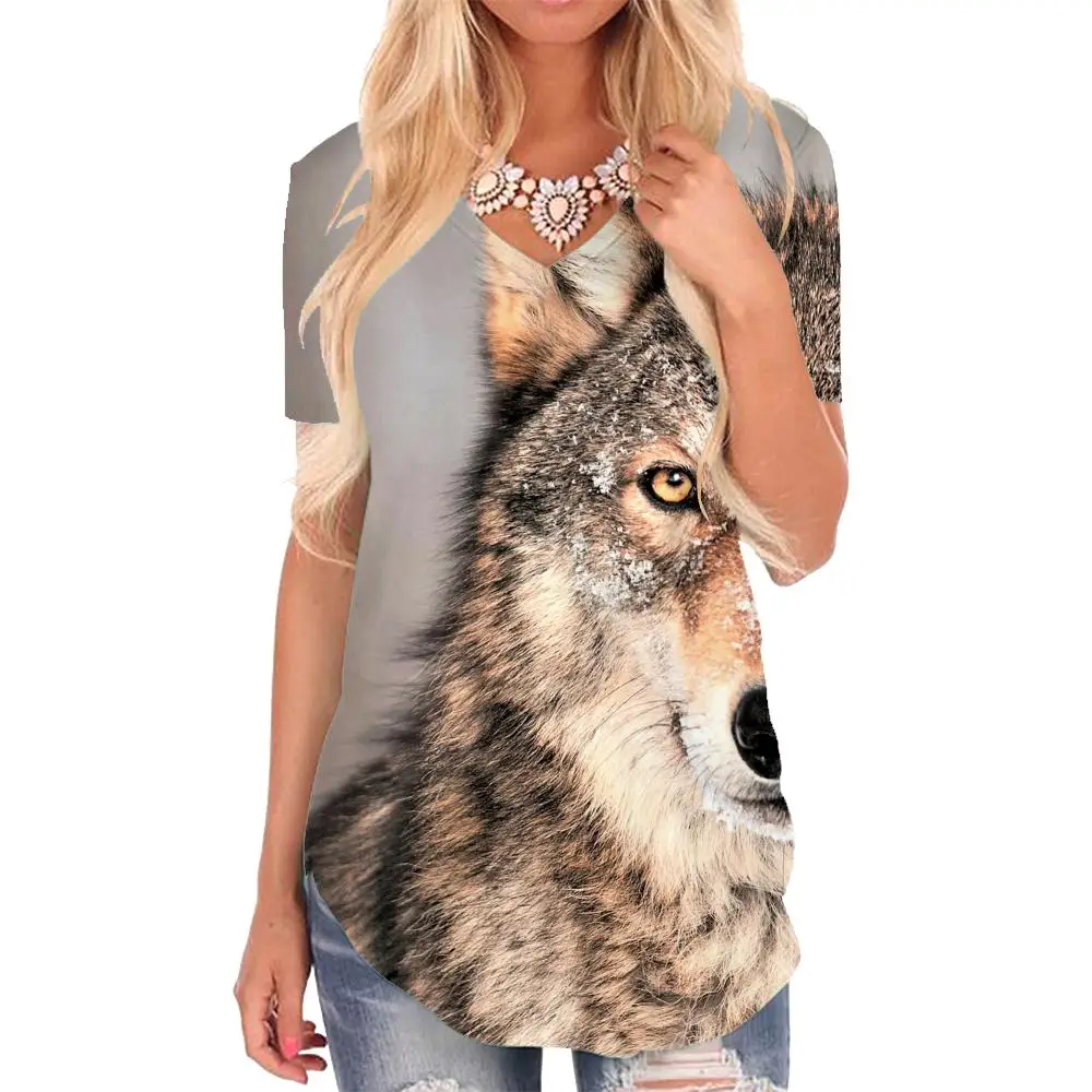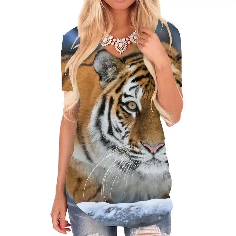 Футболка женская с принтом тигра, гепарда, 3d животных, с V-образны...