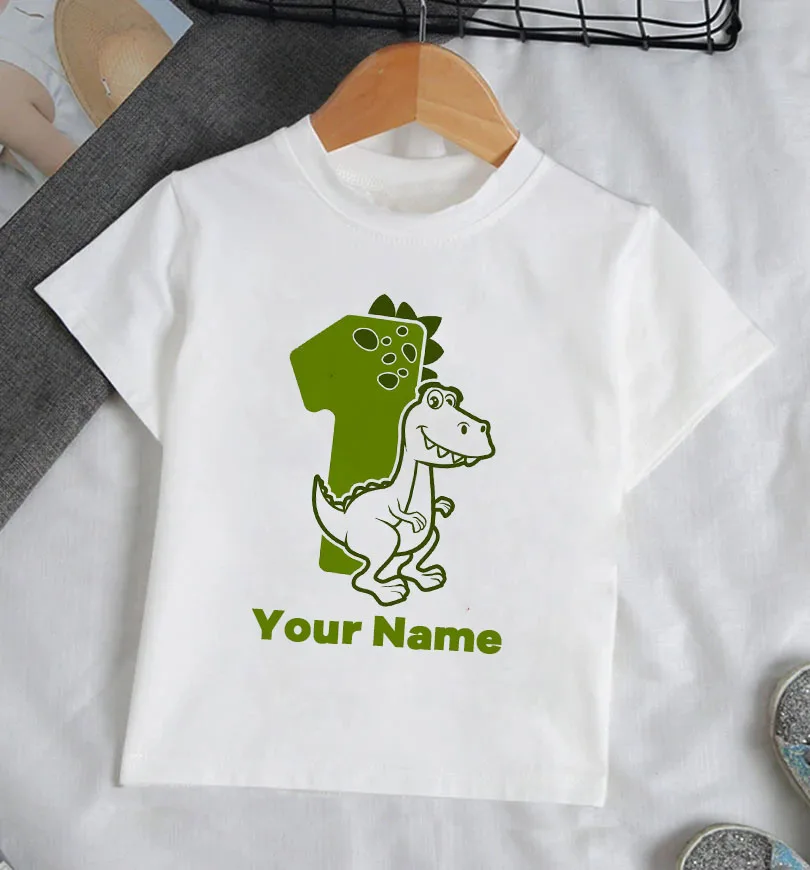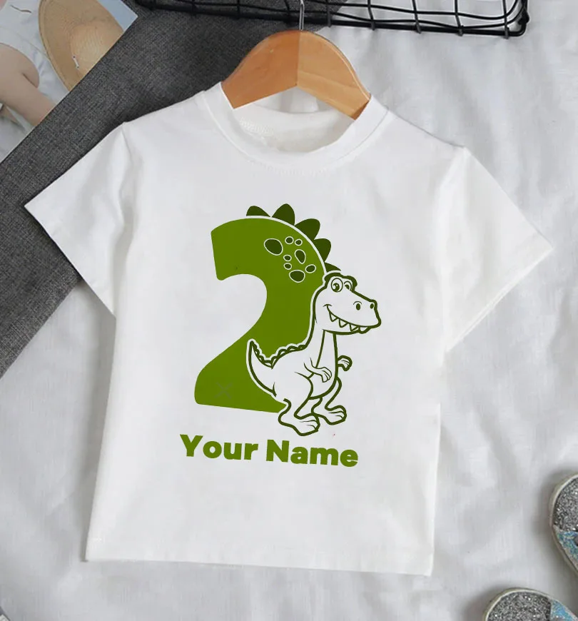 Футболка с динозавром для мальчиков, персональная детская одежда на день рождения, топ для вечеринки, наряд с именем и возрастом